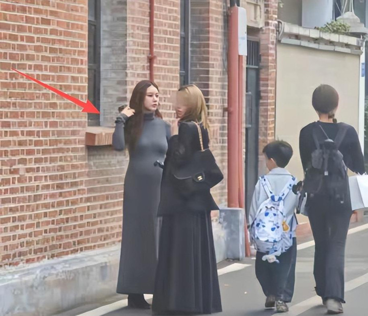 而画面中可以看到,她当时穿着的是一件比较紧身的连衣裙,可以很明显的看出她的孕肚已经很大了。